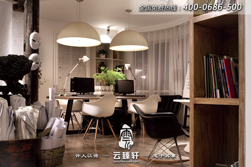 本案追求在簡樸、通透的現代空間中,融入傳統的人文元素,以創造出具有人文精神的藝術空間。所以,云臻軒設計師把此案例設計成簡樸的中式工作室的形式;下面我們一起來欣賞一下。