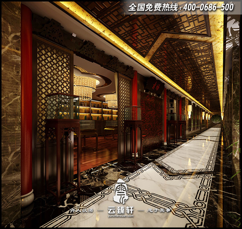 中式會所走廊設計效果圖